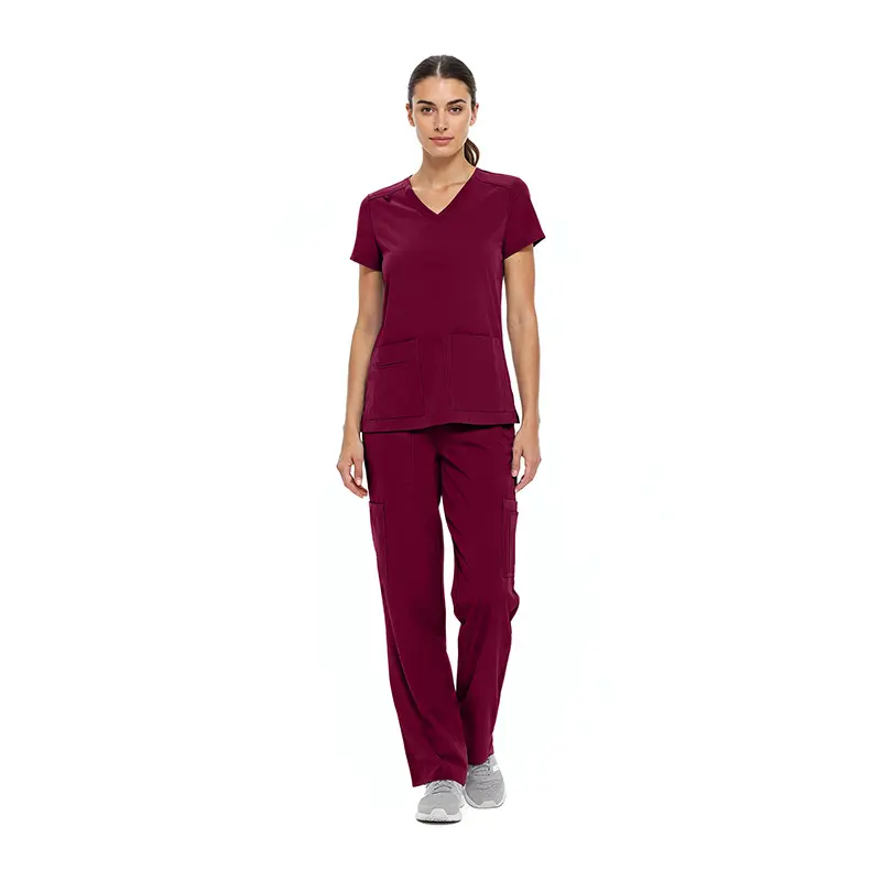 • CONJUNTO MÉDICO COOL STRETCH CON CUELLO EN V Y PANTALÓN CARGO PARA MUJER (ESTILO N.º 8400SET)